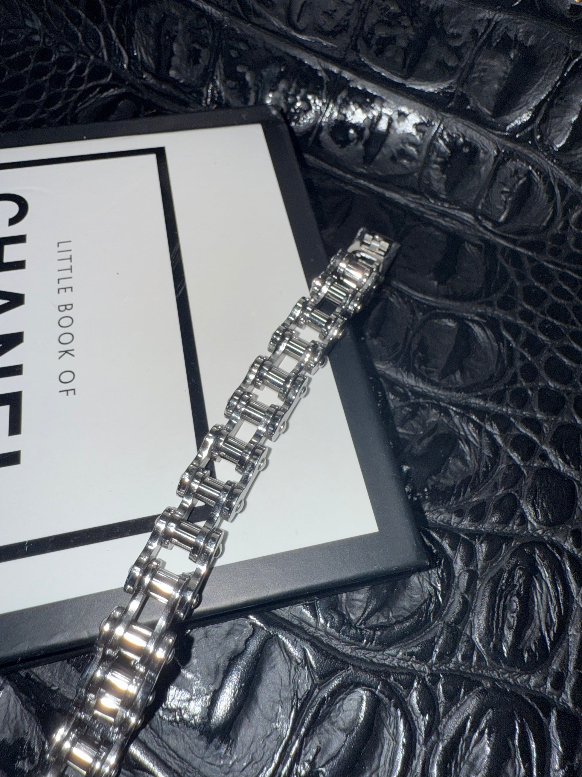 "Unleash your inner rebel with our Biker Bracelet, inspired by bike chains. Strut your stuff with this edgy and unique accessory, perfect for any outfit. Made for those who dare to be different."